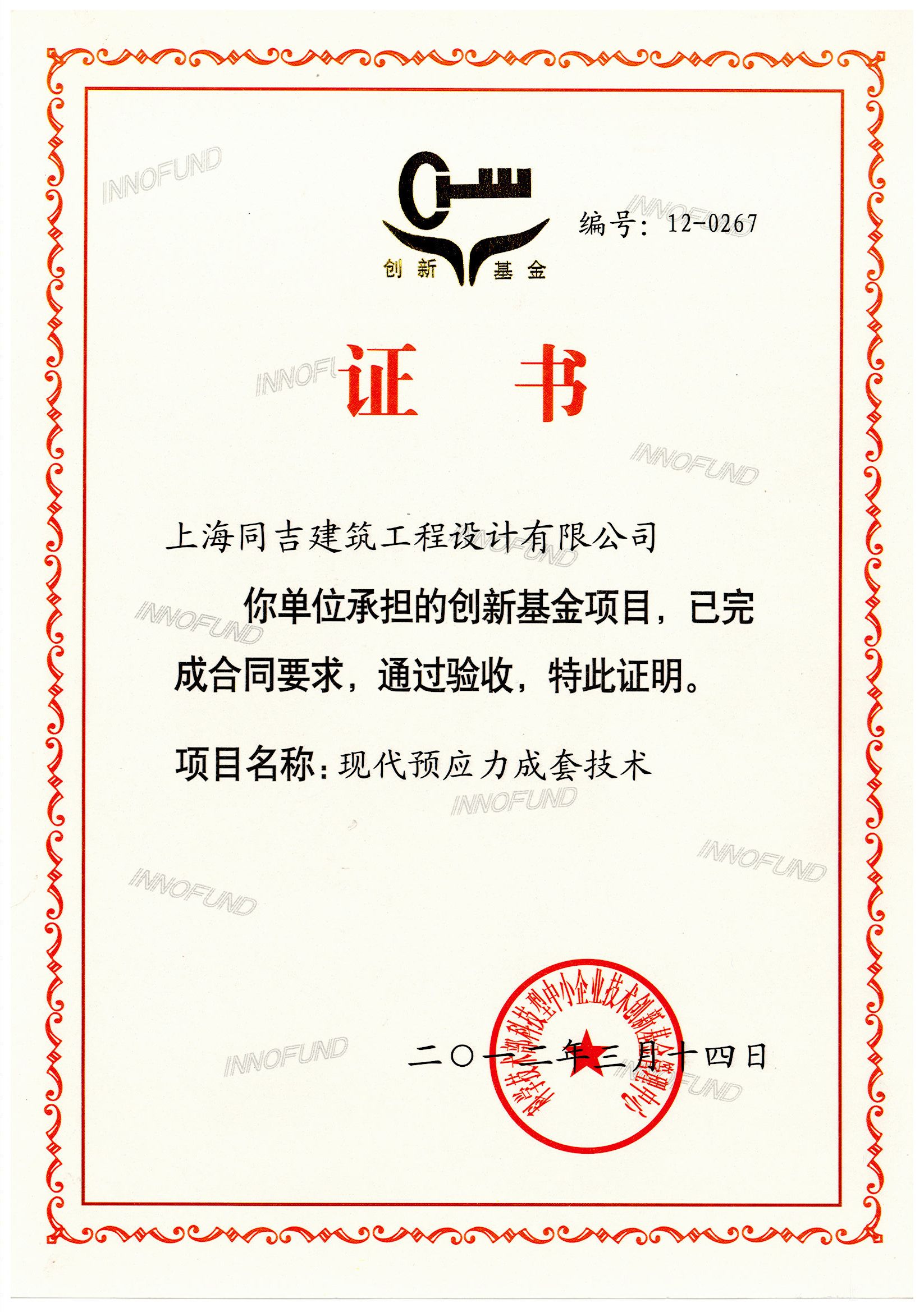C预应力成套技术项目创新基金证?br />